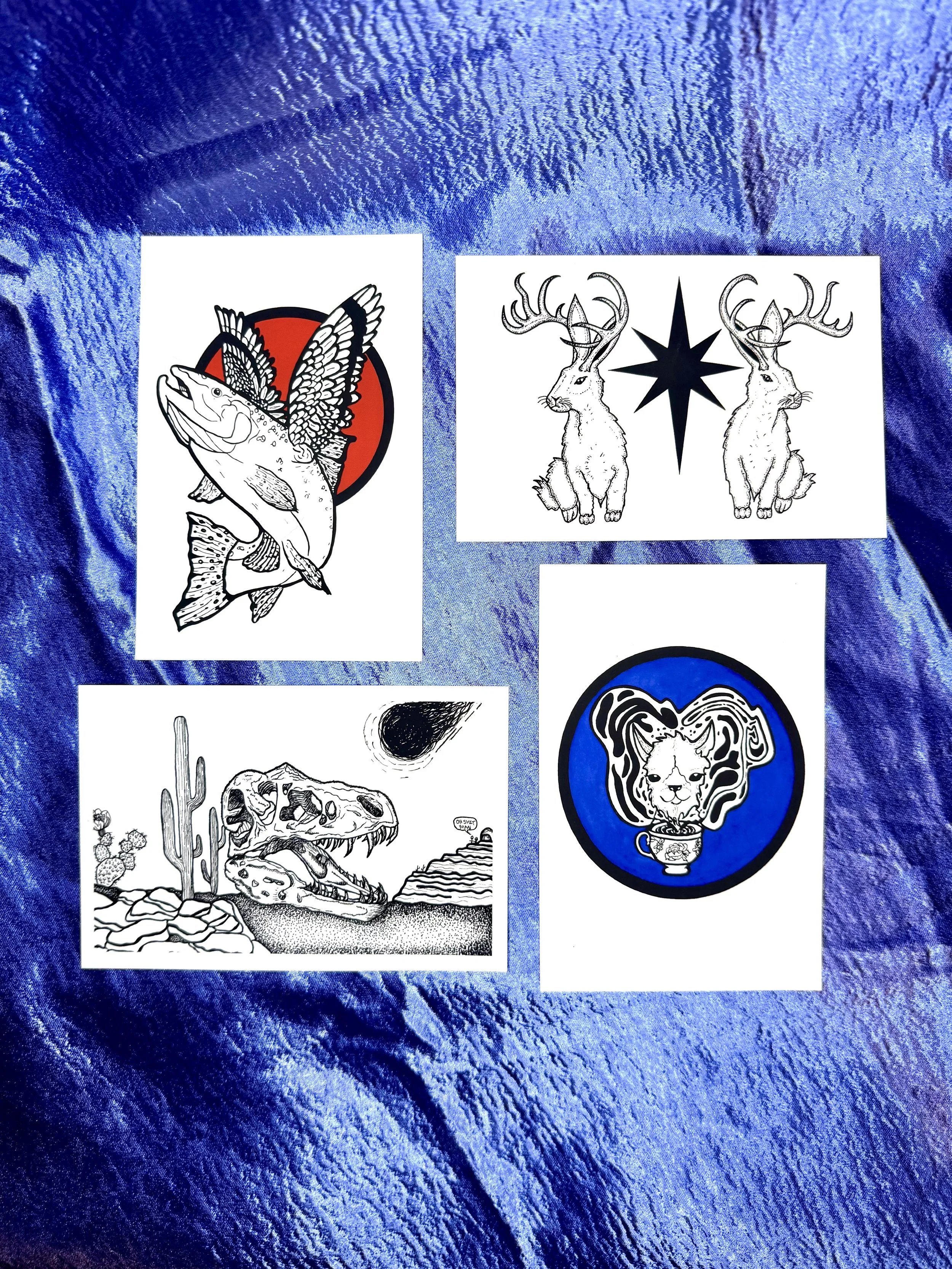 Each starts as a hand-drawn piece at my desk, then gets turned into a print so it can live on your walls.